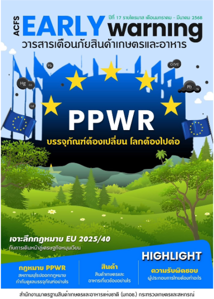 วารสารรายไตรมาส เดือนมกราคม - มีนาคม 2568 เรื่อง “PPWR บรรจุภัณฑ์ต้องเปลี่ยน โลกต้องไปต่อ” สำนักงานมาตรฐานสินค้าเกษตรและอาหารแห่งชาติ