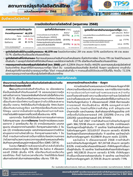 ข้อมูลโดย : กองนโยบายและยุทธศาสตร์การค้าสินค้าอุตสาหกรรมและธุรกิจบริการ สำนักงานนโยบายและยุทธศาสตร์การค้า (สนค.)