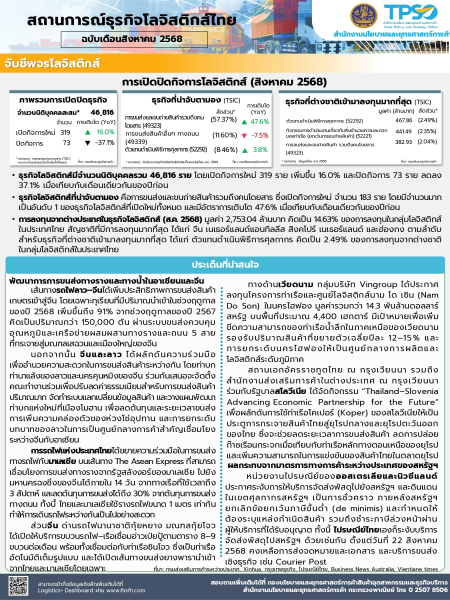 ข้อมูลโดย : กองนโยบายและยุทธศาสตร์การค้าสินค้าอุตสาหกรรมและธุรกิจบริการ สำนักงานนโยบายและยุทธศาสตร์การค้า (สนค.)