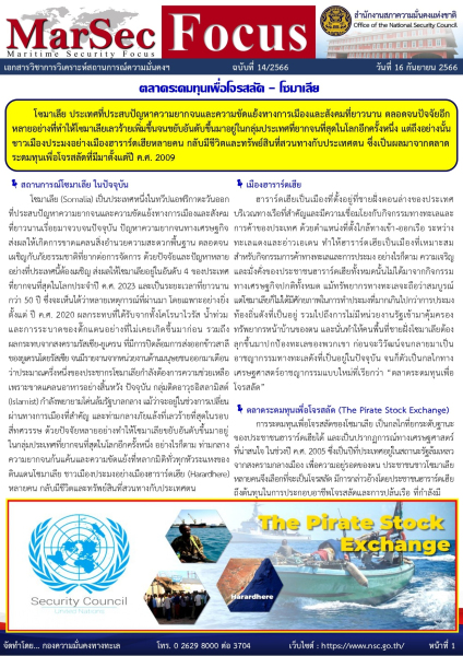 ตลาดระดมทุนเพื่อโจรสลัด – โซมาเลีย [MarSecFocus, ฉบับที่ 14/2566]