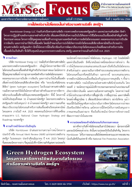 เอกสารวิชาการวิเคราะห์สถานการณ์ความมั่นคงทางทะเล ฉบับที่ 17/2566