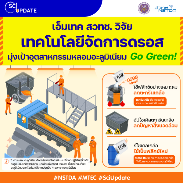 เอ็มเทค สวทช. วิจัยเทคโนโลยีจัดการดรอส (dross) มุ่งเป้าอุตสาหกรรมหลอมอะลูมิเนียมโกกรีน