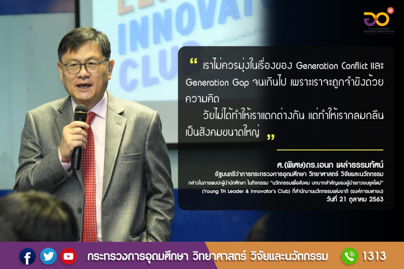 "เราไม่ควรมุ่งในเรื่องของ Generation Conflict และ Generation Gap จนเกินไป เพราะเราจะถูกจำขังด้วยความคิด วัยไม่ได้ทำให้เราแตกต่างกัน แต่ทำให้เรากลมกลืนเป็นสังคมขนาดใหญ่"