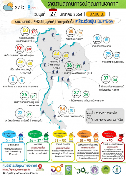 รายงานข้อมูลสถานการณ์คุณภาพอากาศ ณ วันพุธที่ 27 มกราคม 2564