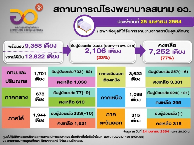 สถานการณ์โรงพยาบาลสนามในสังกัด อว. (ประจำวันที่ 25 เมษายน 2564)