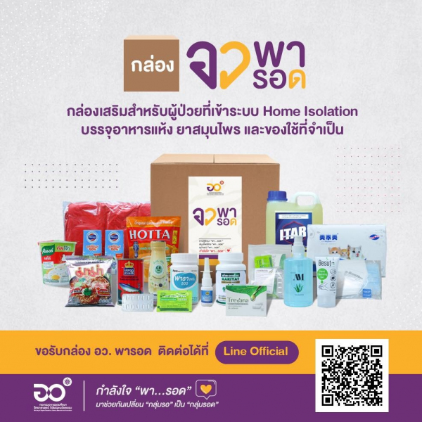กล่อง อว. พารอด เป็นกล่องเสริมสำหรับผู้ป่วยที่เข้าระบบ Home Isolation บรรจุอาหารแห้ง ยาสมุนไพร และของใช้ที่จำเป็น
