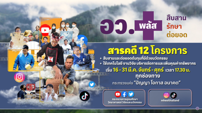 อว. พลัส 12 โครงการ สืบสาน รักษา และต่อยอด งานโครงการในพระราชดำริ ยกระดับทรัพยากรและคุณภาพชีวิตด้วยนวัตกรรม ถ่ายทอดผ่านสารคดี 12 เรื่อง