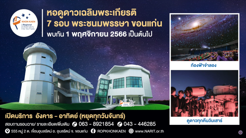 "หอดูดาวเฉลิมพระเกียรติ 7 รอบ พระชนมพรรษา ขอนแก่น" พร้อมให้บริการประชาชนแล้ว ในส่วนท้องฟ้าจำลองฟูลโดมดิจิทัล และหอดูดาว กับกิจกรรมดูดาวผ่านกล้องโทรทรรศน์