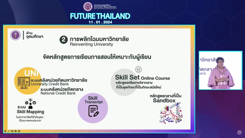 โดย นางสาวศุภมาส อิศรภักดี รัฐมนตรีว่าการกระทรวงการอุดมศึกษา วิทยาศาสตร์ วิจัยและนวัตกรรม (อว.)