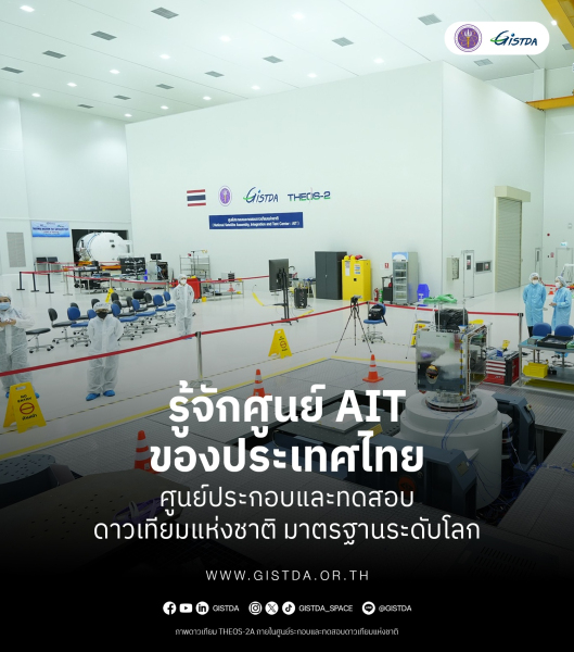 !! ทราบหรือไม่ ประเทศไทยตอนนี้มีห้องคลีนรูมขนาดใหญ่ สำหรับการประกอบและทดสอบดาวเทียมเพื่อนำส่งขึ้นสู่อวกาศ พร้อมวิศวกรผู้มีความเชี่ยวชาญ ที่ร่วมพัฒนาดาวเทียมดวงใหม่ของประเทศอยู่ในปัจจุบัน สถานที่แห่งนี้คือ ศูนย์ประกอบและทดสอบดาวเทียมแห่งชาติ หรือ AIT (ย่อมาจาก Assembly Integration and Testing) ตั้งอยู่ในอุทยานรังสรรค์นวัตกรรมอวกาศ ของสำนักงานพัฒนาเทคโนโลยีอวกาศและภูมิสารสนเทศ หรือ GISTDA อำเภอศรีราชา จังหวัดชลบุรี