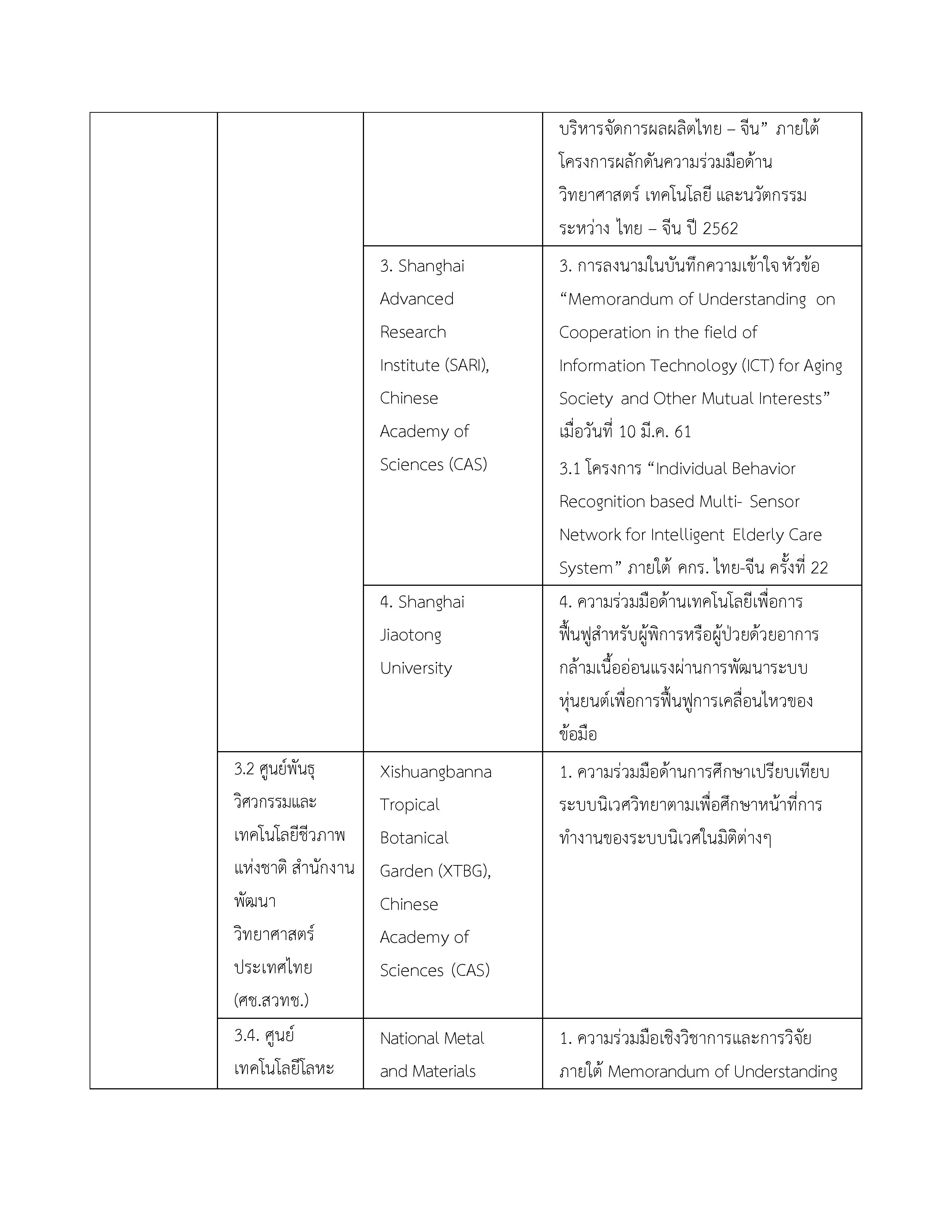 | 3. บันทึกความเข้าใจระหว่างกระทรวงวิทยาศาสตร์และเทคโนโลยีแห่งราชอาณาจักรไทยกับสถาบันบัณฑิตวิทยาศาสตร์จีนแห่งสาธารณรัฐประชาชนจีน | 16 พฤษภาคม 2549 | ไม่มี จนกว่าฝ่ายใดฝ่ายหนึ่งจะแจ้งยกเลิก |