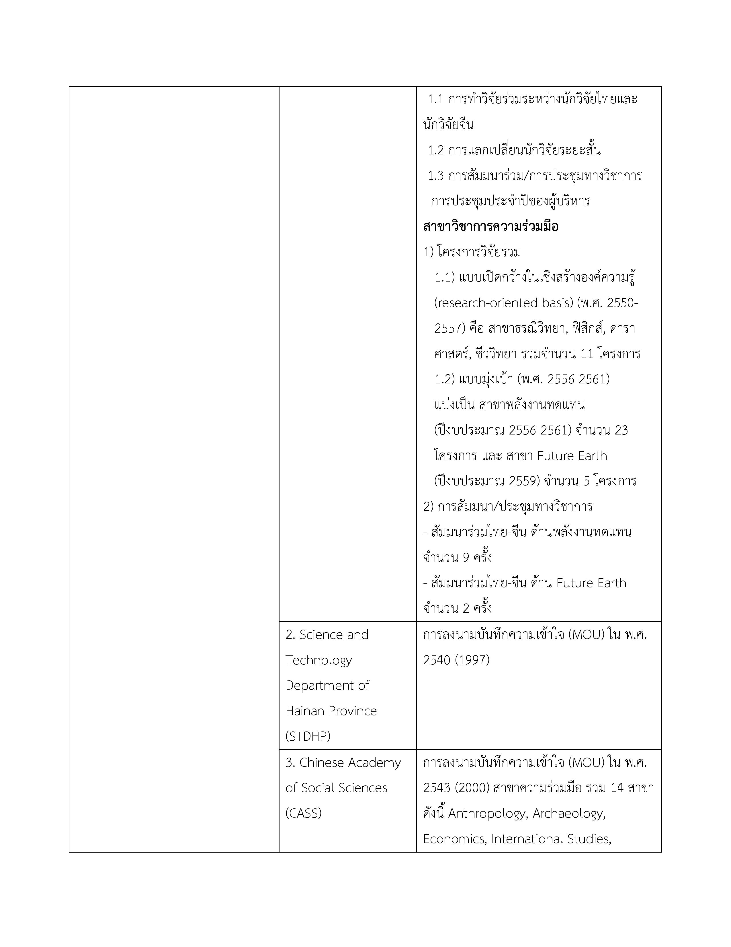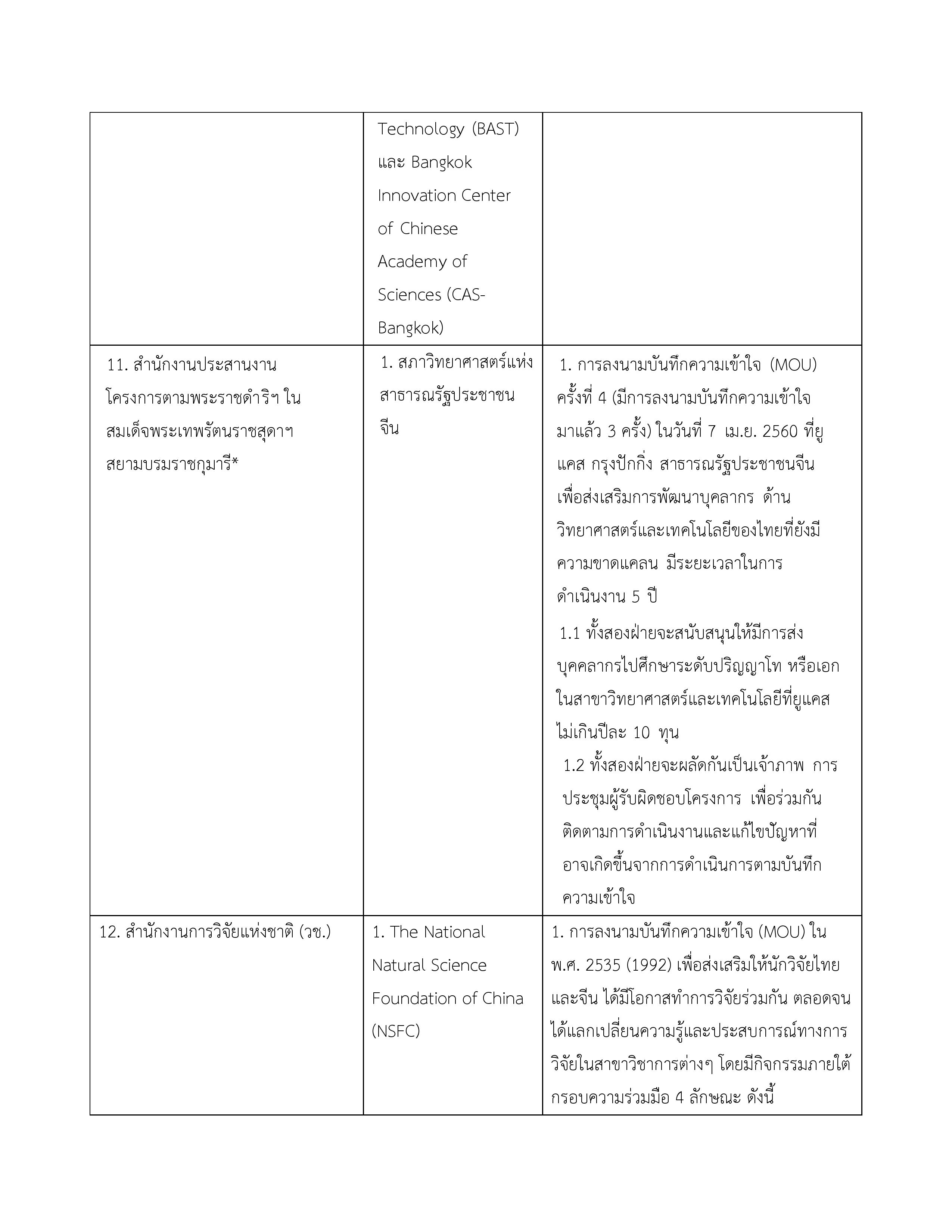| 2. บันทึกความเข้าใจระหว่างกระทรวงวิทยาศาสตร์และเทคโนโลยีแห่งราชอาณาจักรไทยกับกระทรวงวิทยาศาสตร์และเทคโนโลยีแห่งสาธารณรัฐประชาชนจีนว่าด้วยความร่วมมือด้านวิทยาศาสตร์และเทคโนโลยี | 29 กรกฎาคม 2548 | ไม่มี จนกว่าฝ่ายใดฝ่ายหนึ่งจะแจ้งยกเลิก |