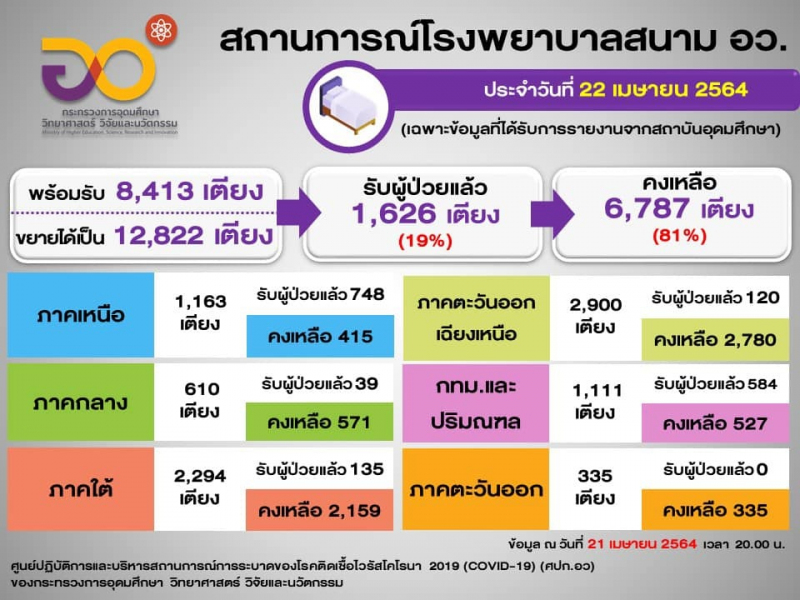 -เตียงพร้อมรับผู้ติดเชื้อ 8413 เตียง