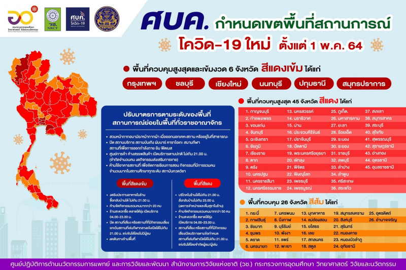 ศบค. กำหนดเขตพื้นที่สถานการณ์โควิด-19 ใหม่ (ตั้งแต่ 1 พฤษภาคม)