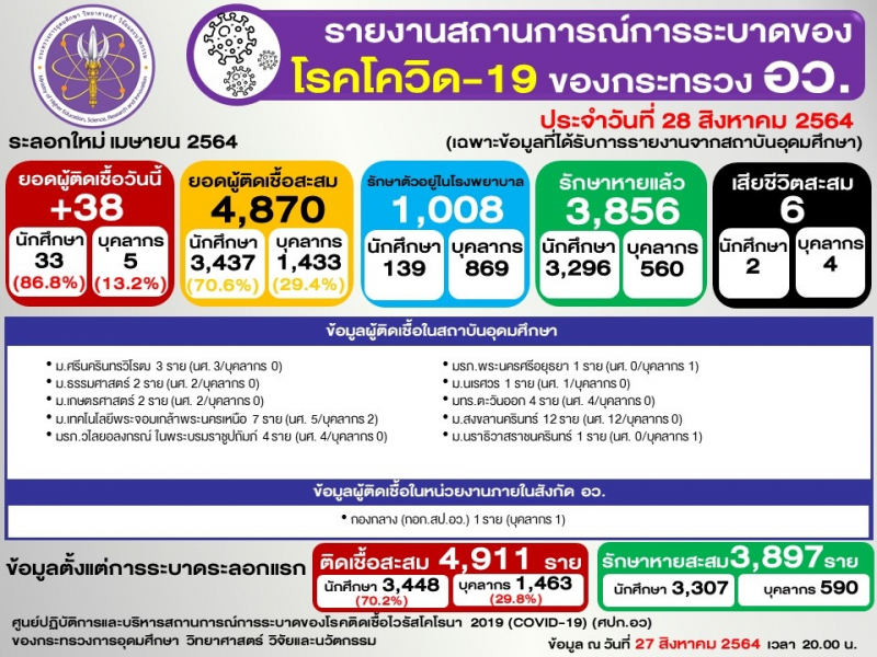 (ข้อมูล ณ 27 สิงหาคม 2564 เวลา 20.00 น.)