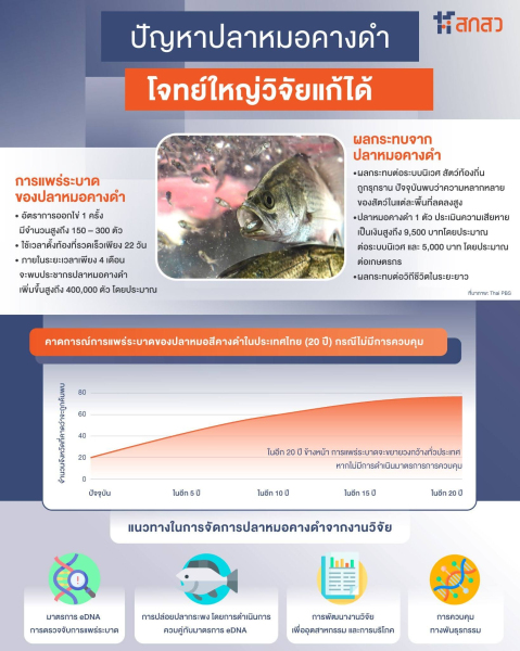 ได้ทำการวิเคราะห์ สถานการณ์จำลอง หรือ ฉากทัศน์ การควบคุมการระบาดของปลาหมอสีคางดำในประเทศไทย ด้วย วิทยาศาสตร์ วิจัยและนวัตกรรม โดย รศ.ดร.ธนพล เพ็ญรัตน์ ผู้อำนวยการหน่วยกลยุทธ์ข้อมูลและดิจิทัล สกสว. เพื่อกำหนดทิศทางการสนับสนุน ส่งเสริม และขับเคลื่อนการพัฒนาและแก้ไขปัญหา ทั้งในระยะสั้น และระยะยาว ร่วมกับ หน่วยรับงบประมาณ และ หน่วยบริหารและจัดการทุน ที่เกี่ยวข้อง