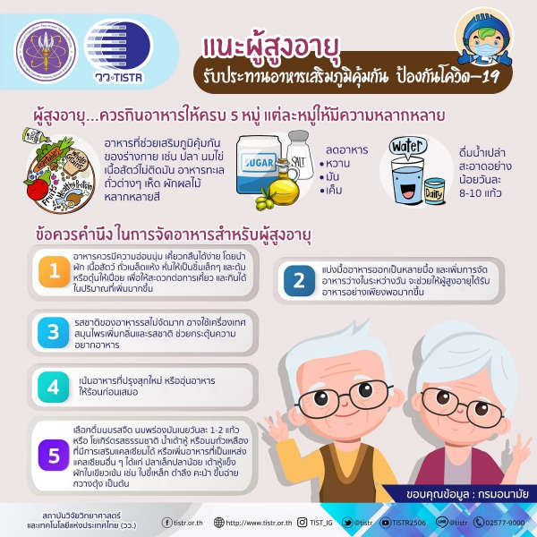 แนะผู้สูงอายุรับประทานอาหารเสริมภูมิคุ้มกัน ป้องกันโควิด-19