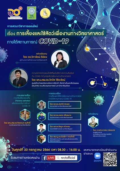สพสว. เชิญชวนเข้าร่วมเสวนาออนไลน์เรื่อง “การเลี้ยงและใช้สัตว์เพื่องานทางวิทยาศาสตร์ ภายใต้สถานการณ์ COVID-19”