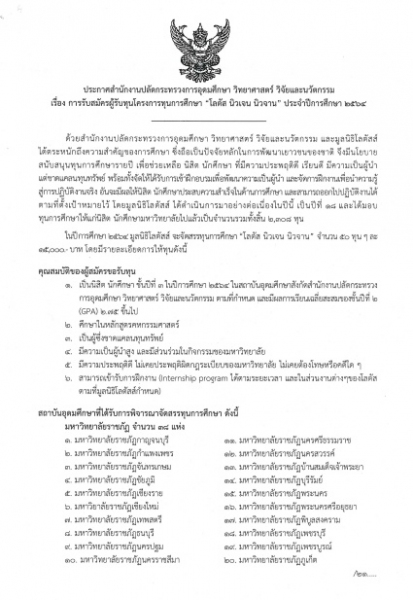 การรับสมัครผู้รับทุนโครงการทุนการศึกษา "โลตัส นิวเจน นิวจาน" ประจำปีการศึกษา ๒๕๖๔