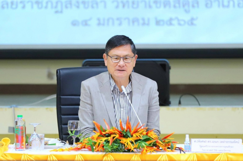 14 มกราคม 2565 : ศ.(พิเศษ) ดร.เอนก เหล่าธรรมทัศน์ รัฐมนตรีว่าการกระทรวงการอุดมศึกษา วิทยาศาสตร์ วิจัยและนวัตกรรม (อว.) นำทีมผู้บริหารภายใต้สังกัด อว. ประกอบด้วย ศ.ดร.นพ.สิริฤกษ์ ทรงศิวิไล ปลัด อว. ดร.ดนุช ตันเทอดทิตย์ ผู้ช่วย รมว.อว. นายเพิ่มสุข สัจจาภิวัฒน์ เลขาธิการสำนักงานปรมาณูเพื่อสันติ (ปส.) นพ.ปฐม สวรรค์ปัญญาเลิศ อธิบดีกรมวิทยาศาสตร์บริการ (วศ.) ดร.วิภารัตน์ ดีอ่อง ผู้อำนวยการสำนักงานการวิจัยแห่งชาติ (วช.) ร่วมประชุมหารือกับผู้แทน อว.ส่วนหน้า และรับฟังรายงานผลความคืบหน้าในพื้นที่ ที่ มรภ.สงขลา วิทยาเขตสตูล เพื่อบูรณาการความร่วมมือ ยกระดับการวิจัยและการพัฒนาให้ยั่งยืนในพื้นที่ จ.สตูล