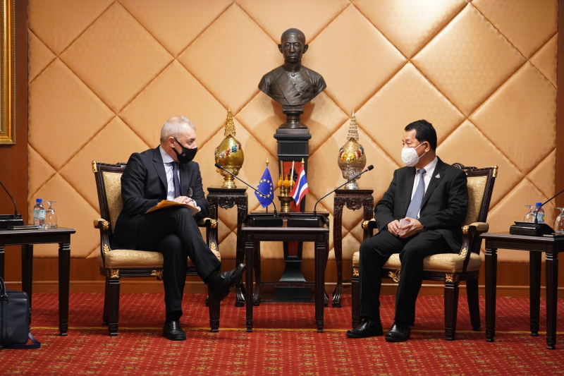 เมื่อวันที่ 4 กุมภาพันธ์ 2565 เวลา 09.00 - 10.00 น. นายจูเซปเป บูซินี่ (Mr. Giuseppe Busini) อัครราชทูต - รองหัวหน้าคณะผู้แทนสหภาพยุโรปประจำประเทศไทย เข้าเยี่ยมคารวะ ศ.ดร.นพ.สิริฤกษ์ ทรงศิวิไล ปลัดกระทรวงการอุดมศึกษา วิทยาศาสตร์ วิจัยและนวัตกรรม (ปอว.) พร้อมด้วย รศ.ดร.พาสิทธิ์ หล่อธีรพงศ์ รอง ปอว. ณ ห้องพระจอมเกล้า ชั้น 4 อาคารพระจอมเกล้า สป.อว.