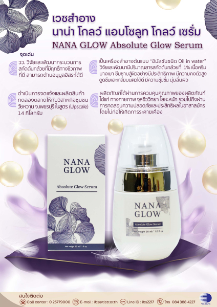 กระทรวงการอุดมศึกษา วิทยาศาสตร์ วิจัยและนวัตกรรม (อว.)  โดย ศูนย์บริการนวัตกรรมเวชสำอางแบบครบวงจร (ICOS)  ในสังกัด ศูนย์เชี่ยวชาญนวัตกรรมผลิตภัณฑ์สมุนไพร (ศนส.) สถาบันวิจัยวิทยาศาสตร์และเทคโนโลยีแห่งประเทศไทย (วว.) ดำเนิน โครงการพัฒนาต้นแบบผลิตภัณฑ์เวชสำอางสมุนไพรอ้างอิงเพื่อการขึ้นทะเบียนผลิตภัณฑ์สมุนไพร โดยมี นางสาวมณีรัตน์  จัตตุลาภา นักวิจัย ศนส. เป็นหัวหน้าโครงการ ประสบผลสำเร็จ ในการวิจัยและพัฒนา “ต้นแบบเวชสำอางจากสารสกัดต้นกล้วย” หรือ นาน่า โกลว์ แอบโซลูท โกลว์ เซรั่ม  (NANA GLOW Absolute Glow Serum)  และ วว. ได้ให้บริการผลิตสินค้าทดลองตลาดแก่วิสาหกิจชุมชนวัยหวาน บ้านหนองเขื่อน ต.ไร่ใหม่พัฒนา  อ.ชะอำ จ.เพชรบุรี