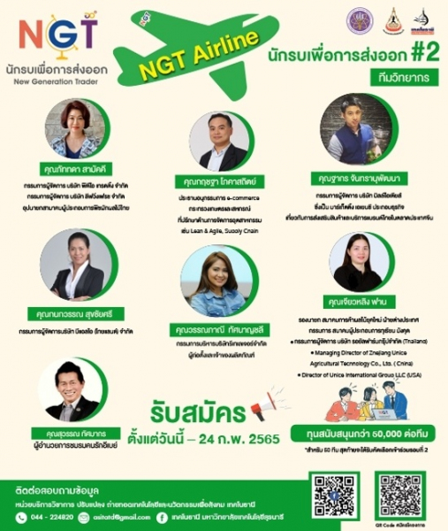 ขอเชิญสมัครเข้าร่วมโครงการนักรบเพื่อการส่งออก (New Generation Trader : NGT) รุ่นที่ 2 ประจำปี พ.ศ. 2565
