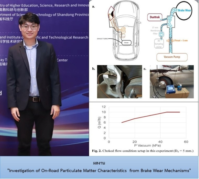 2) ประเภทวิทยานิพนธ์ สาขาวิศวกรรมศาสตร์และอุตสาหกรรมวิจัย ได้แก่ ดร.วรวัฒน์ ทรงกิตติ นักวิชาการ ศูนย์ทดสอบมาตรฐานระบบขนส่งทางราง (ศทร.) จากผลงาน "Investigation of On-Road Particulate Matter Characteristics from Brake Wear Mechanisms" ซึ่งเป็นการศึกษาเกี่ยวกับการวิเคราะห์ลักษณะและปัจจัยที่มีผลต่อการปล่อยอนุภาคในละอองจากการเบรกยานยนต์ในสภาพการขับขี่จริง โดยใช้เทคนิคการเก็บตัวอย่างแบบไอโซคิเนติก (Isokinetic Sampling) ซึ่งช่วยเพิ่มความแม่นยำในการวัดค่าอนุภาค พร้อมทั้งวิเคราะห์ผลกระทบจากอุณหภูมิการเบรกและปัจจัยต่างๆ ที่มีผลต่อปริมาณฝุ่นละออง