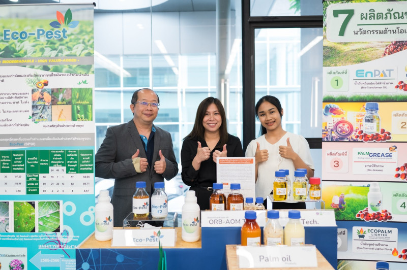 ด้านนวัตกรรมโอเลโอเคมีภัณฑ์และเคมีภัณฑ์สีเขียว: เทคโนโลยีเพื่อความยั่งยืน โดยสร้างมูลค่าเพิ่มให้กับผลผลิตทางการเกษตร โดยเฉพาะปาล์มน้ำมัน ด้วยผลงานอย่าง "Eco-Pest" สารเสริมประสิทธิภาพการเกษตรจากน้ำมันปาล์มบริสุทธิ์ ที่ช่วยลดการใช้สารเคมี ปลอดภัยต่อผู้ใช้และสิ่งแวดล้อม พร้อมถ่ายทอดเทคโนโลยีสู่ภาคอุตสาหกรรม และ "น้ำมันหล่อลื่นพื้นฐานชีวภาพจากปาล์มน้ำมัน" ที่เป็นมิตรต่อสิ่งแวดล้อม ย่อยสลายได้ ลดการนำเข้าปิโตรเลียม และอยู่ระหว่างการพัฒนาต่อยอดเพื่อประยุกต์ใช้งานที่หลากหลาย