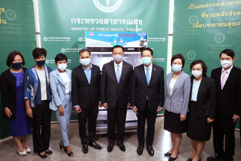 (11 มีนาคม 2564) ณ กระทรวงสาธารณสุข : สภาอุตสาหกรรมแห่งประเทศไทย จัดงานแถลงข่าว “โครงการ FTI ช่วยชาติสู้โควิด-19” ส่งมอบตู้เก็บวัคซีนและชุดอุปกรณ์ Monitoring ให้แก่สถานพยาบาลรัฐ 77 จังหวัดทั่วประเทศ โดยสำนักงานพัฒนาวิทยาศาสตร์และเทคโนโลยีแห่งชาติ (สวทช.) ได้ให้การสนับสนุนและพัฒนาระบบวัดอุณหภูมิ-ความชื้นตู้เก็บวัคซีนโควิด-19 ของบริษัท โนวากรีน เพาเวอร์ซิสเต็ม จำกัด หนึ่งในสมาชิกประชาคมอุทยานวิทยาศาสตร์ประเทศไทย โดยระบบดังกล่าวได้ผ่านการทดสอบมาตรฐานจากศูนย์ทดสอบผลิตภัณฑ์ไฟฟ้าและอิเล็กทรอนิกส์ (PTEC) เพื่อให้คนไทยทั้งประเทศได้มีคุณภาพชีวิตที่ดีสอดคล้องกับนโยบายภาครัฐ โดยมีนายอนุทิน ชาญวีรกูล รองนายกรัฐมนตรีและรัฐมนตรีว่าการกระทรวงสาธารณสุข เป็นประธานในพิธีรับมอบ พร้อมด้วย ดร.ฐิตาภา สมิตินนท์ รองผู้อำนวยการ สวทช. นางสุวิภา วรรณสาธพ ผู้ช่วยผู้อำนวยการ สวทช. และผู้อำนวยการอุทยานวิทยาศาสตร์ประเทศไทย ดร.ศิวรักษ์ ศิวโมกษธรรม ผู้อำนวยการ ศูนย์เทคโนโลยีเพื่อความมั่นคงของประเทศและการประยุกต์เชิงพาณิชย์ (NSD) สวทช. ในฐานะที่ปรึกษาโครงการ และนายจิรเดช อ่อนชุม กรรมการผู้จัดการ บริษัท โนวากรีน เพาเวอร์ซิสเต็ม จำกัด เข้าร่วมในพิธีครั้งนี้