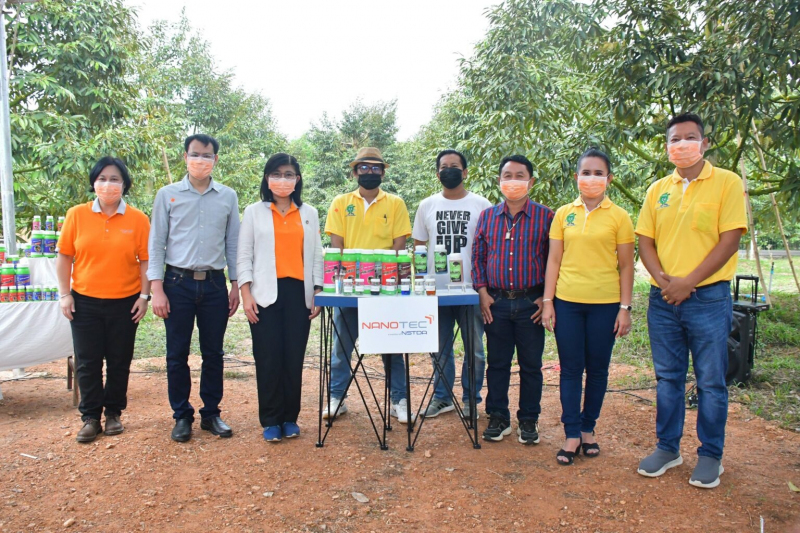 กระทรวงการอุดมศึกษา วิทยาศาสตร์ วิจัยและนวัตกรรม (อว.) สำนักงานพัฒนาวิทยาศาสตร์และเทคโนโลยีแห่งชาติ (สวทช.) โดย ศูนย์นาโนเทคโนโลยีแห่งชาติ (นาโนเทค) นำโดย ดร.วรรณี ฉินศิริกุล ผู้อำนวยการนาโนเทค พร้อมด้วย ดร.คมสันต์ สุทธิสินทอง นักวิจัยเจ้าของงานวิจัย “สารคีเลตจุลธาตุอาหารที่เป็นมิตรต่อสิ่งแวดล้อม เพื่อเพิ่มการดูดซึมเข้าสู่พืช” พร้อมนายวัชรินทร์ อินทร กรรมการผู้จัดการ บริษัท เทค ซายน์ จำกัด เอกชนผู้รับถ่ายทอดเทคโนโลยี พาคณะสื่อมวลชนลงพื้นที่ ณ สวนแพสุขชื่น จังหวัดระยอง เพื่อดูผลการใช้ “ปุ๋ยคีเลต” ผลิตภัณฑ์ที่รับถ่ายทอดเทคโนโลยีในทุเรียน พืชเศรษฐกิจสำคัญของระยอง ตอบนโยบาย BCG ด้านเกษตรและอาหาร