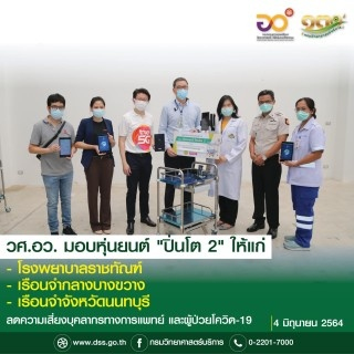 ทั้งนี้ผู้ที่สนใจสอบถามข้อมูลเพิ่มเติมเกี่ยวกับนวัตกรรมหุ่นยนต์สนับสนุนทางการแพทย์ ติดต่อสอบถามได้ที่ www.dss.go.th และโทรศัพท์ 02201-7000