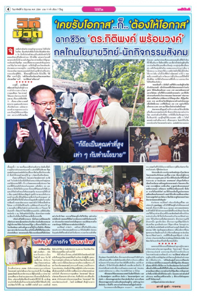 โดย ดร.กิติพงค์ บอกว่า ตรงนี้…เป็นคุณค่าที่สูงเท่า ๆ กับทำนโยบาย ทำมาเป็นสิบปี นอกจากนี้ภรรยายังเป็นอาสาสมัครมูลนิธิเด็กอ่อนรังสิต ช่วยพัฒนาจิตใจและทักษะชีวิตเด็กที่ถูกทอดทิ้งด้วย