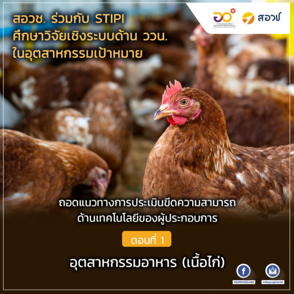 สำนักงานสภานโยบายการอุดมศึกษา วิทยาศาสตร์ วิจัยและนวัตกรรมแห่งชาติ (สอวช.) ร่วมกับ สถาบันนโยบายวิทยาศาสตร์ เทคโนโลยีและนวัตกรรม (STIPI) มหาวิทยาลัยเทคโนโลยีพระจอมเกล้าธนบุรี ดำเนินโครงการศึกษาวิจัยเชิงระบบด้านวิทยาศาสตร์ วิจัยและนวัตกรรม ในอุตสาหกรรมเป้าหมาย เพื่อถอดบทเรียนแนวทางการประเมินขีดความสามารถด้านเทคโนโลยี (Technological Capability) ของต่างประเทศ และพัฒนาแนวทางการประเมินขีดความสามารถด้านเทคโนโลยี ศึกษาและวิเคราะห์ขีดความสามารถด้านเทคโนโลยี ของผู้ประกอบการในอุตสาหกรรมเป้าหมาย ซึ่งได้แก่ อุตสาหกรรมอาหาร (เนื้อไก่) และอุตสาหกรรมยานยนต์ (ยานยนต์ไฟฟ้า) เพื่อให้ได้มาซึ่งแนวทางการประเมินขีดความสามารถด้านวิทยาศาสตร์ วิจัยและนวัตกรรมและผลการประเมินขีดความสามารถดังกล่าวของผู้ประกอบการไทยในอุตสาหกรรมเป้าหมาย