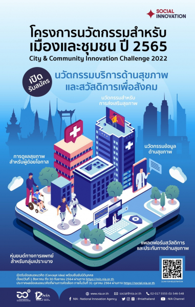 ฝ่ายนวัตกรรมเพื่อสังคม NIA กำลังเฟ้นหาไอเดียนวัตกรรมดีๆ ที่สามารถผลักดันไปสู่การแก้ไขปัญหาสังคมในมิติต่างๆ ที่กำลังเกิดขึ้นจริง ภายใต้โครงการ “นวัตกรรมสำหรับเมืองและชุมชนปี 2565” (City & Community Innovation Challenge 2022)