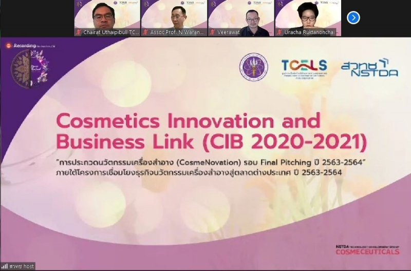 กระทรวงการอุดมศึกษา วิทยาศาสตร์ วิจัยและนวัตกรรม โดย ศูนย์ความเป็นเลิศด้านชีววิทยาศาสตร์ (องค์การมหาชน) หรือ ทีเซลส์ (TCELS) ร่วมกับ สำนักงานพัฒนาวิทยาศาสตร์และเทคโนโลยีแห่งชาติ (สวทช.), มหาวิทยาลัยนเรศวร, มหาวิทยาลัยมหิดล, สมาคมการค้าคลัสเตอร์เครื่องสำอางไทย และหอการค้าไทย-ฝรั่งเศล จัดกิจกรรมการประกวดนวัตกรรมเครื่องสำอาง ปี 2564 (CosmeNovation) รอบ Final Pitching ภายใต้โครงการเชื่อมโยงธุรกิจนวัตกรรมเครื่องสำอางสู่ตลาดต่างประเทศ ปี 2563-2564 หรือ Cosmetics Innovation and Business Link (CIB 2020-2021) เมื่อวันที่ 3 กันยายน 2564 ผ่านระบบออนไลน์ โดย ดร.ชัยรัตน์ อุทัยพิบูลย์ รองผู้อำนวยการด้านวิชาการและนวัตกรรมศูนย์ความเป็นเลิศด้านชีววิทยาศาสตร์ ให้เกียรติกล่าวเปิดงาน