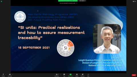 ดร.จริยา บัวเจริญ หัวหน้าฝ่ายมาตรวิทยามิติ สถาบันมาตรวิทยาแห่งชาติ (มว.) ในฐาน APMP DEC Future Proofing Task Force Lead จัดประชุมเชิงปฏิบัติการเรื่อง “SI units: Practical realizations and how to assure measurement traceability” ในวันที่ 15, 17 และ 20 กันยายน 2564  โดยในกิจกรรมดังกล่าวได้มีการอัพเดตสถานะปัจจุบันของมาตรฐานการวัดในด้าน Metre, Kelvin และ Kilogram จากประเทศสมาชิก ได้แก่ จีน สิงคโปร์ ไต้หวัน อินเดียว อินโดนีเซีย กัมพูชา และประเทศไทย  ในการนี้มีพนักงาน มว. นำเสนอสถานะปัจจุบันของมาตรฐานการวัด (Current status of the national measurement standard) ด้วย ได้แก่ ดร.นรินทร์ จันทวงศ์ และนายวศิน ลิ้มธัญลักษณ์ ฝ่ายมาตรวิทยามิติ นำเสนอด้าน Length measurement (Metre) ดร.อธิคม มาน้อย ฝ่ายมาตรวิทยาอุณหภูมิและแสง นำเสนอด้าน Temperature measurement (Kelvin) และ ดร.ชุติมณฑน์ สืบค้า ฝ่ายมาตรวิทยาเชิงกล นำเสนอด้าน Mass measurement (Kilogram) วัตถุประสงค์ของการจัดกิจกรรมในครั้งนี้ก็เพื่อพัฒนาความร่วมมือระหว่างประเทศสมาชิกในด้านมาตรฐานการวัดภายในภูมิภาค ยกระดับความสามารถด้านมาตรวิทยาของประเทศสมาชิก และสร้างการยอมรับในระดับสากล  สนับสนุนให้เกิดการสอบกลับได้ทางการวัดของประเทศสมาชิก และเพื่อให้มั่นใจว่า มาตรฐานการวัดภายในภูมิภาคสามารถสอบกลับได้ถึงนิยามของหน่วยวัดสากล (International System of Units หรือ SI Units) โดยการประชุมดังกล่าวจัดขึ้นในแบบออนไลน์ ณ สถาบันมาตรวิทยาแห่งชาติ (มว.) จังหวัดปทุมธานี