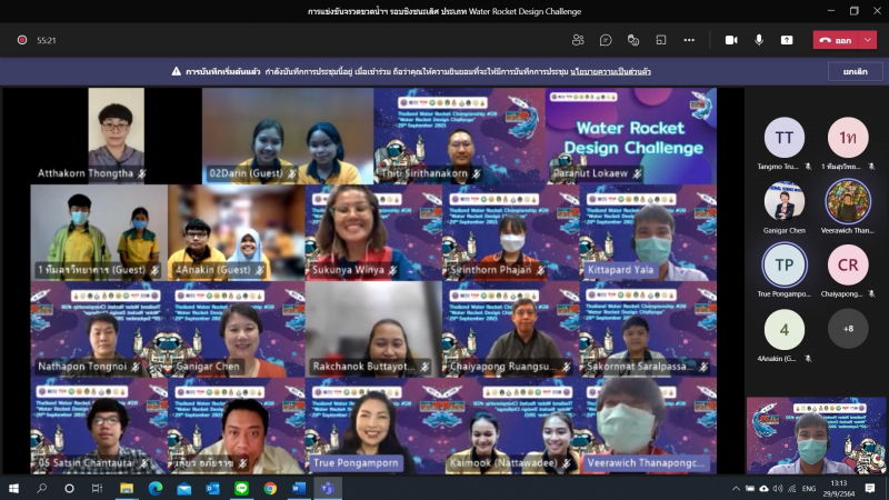 สำหรับการแข่งขันประเภท Water Rocket Design Challenge ได้จัดการแข่งขันรอบชิงชนะเลิศ ในวันที่ 29 กันยายน 2564 โดยมีทีมที่เข้าร่วมแข่งขันทั้งหมด 5 ทีม ผ่านการแข่งขันรูปแบบออนไลน์ โดยได้รับเกียรติจาก ดร.กรรณิการ์ เฉิน รองผู้อำนวยการองค์การพิพิธภัณฑ์วิทยาศาสตร์แห่งชาติ เป็นประธานในพีธีการมอบรางวัล และกล่าวแสดงความยินดีกับผู้เข้าแข่งขัน และคุณผ่องอัมพร ศุภพันธ์ ผู้จัดการฝ่ายองค์กรสัมพันธ์ บริษัท ทรู คอร์ปอเรชั่น จำกัด (มหาชน) ร่วมแสดงความยินดีกับผู้เข้าแข่งขันฯ ในวันดังกล่าว