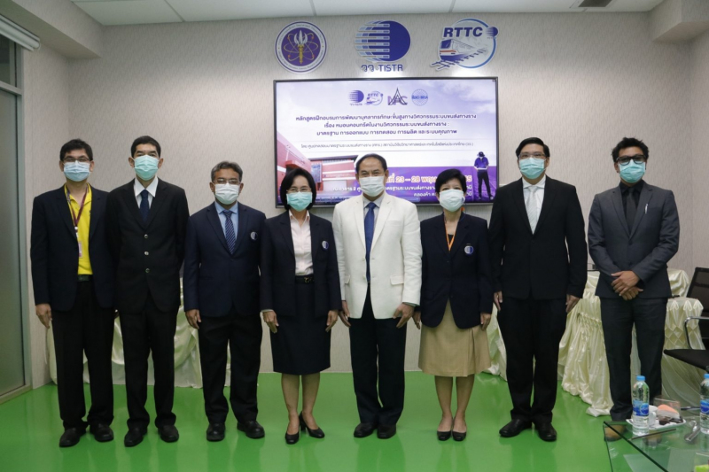 รศ.ดร.สมหมาย ผิวสอาด ประธานคณะกรรมการอธิการบดีมหาวิทยาลัยเทคโนโลยีราชมงคล เป็นประธานเปิดการอบรมหลักสูตรการพัฒนาทักษะบุคลากรขั้นสูงทางวิศวกรรมระบบขนส่งทางราง เรื่อง หมอนคอนกรีตในงานวิศวกรรมระบบขนส่งทางราง : มาตรฐานการออกแบบ การทดสอบและการผลิตและระบบคุณภาพ ศ. (วิจัย) ดร.ชุติมา เอี่ยมโชติชวลิต ผู้ว่าการสถาบันวิจัยวิทยาศาสตร์และเทคโนโลยีแห่งประเทศไทย (วว.) กระทรวงการอุดมศึกษา วิทยาศาสตร์ วิจัยและนวัตกรรม (อว.) กล่าวต้อนรับผู้เข้ารับการอบรม ซึ่ง วว. โดย ศูนย์ทดสอบมาตรฐานระบบขนส่งทาง (ศทร.) จัดขึ้นระหว่างวันที่ 23-28 พฤษภาคม 2565 ณ อาคาร 2 ศทร. วว. เทคโนธานี โอกาสนี้ ดร.พัชทรา มณีสินธุ์ รองผู้ว่าการบริการอุตสาหกรรม วว. ร่วมเป็นเกียรติด้วย ทั้งนี้เนื้อหาการอบรมผ่านการถ่ายทอดความรู้โดยวิทยากรผู้เชี่ยวชาญทั้งจากภายในประเทศและต่างประเทศ ซึ่งมีประโยชน์ต่อการพัฒนาระบบขนส่งทางราง อาทิ การลงทุนโครงการด้านระบบรางของประเทศไทย การออกแบบหมอนคอนกรีต การวิเคราะห์ปัญหาวิศวกรรมงานทางด้วยโปรแกรม Finite Element เทคโนโลยีการผลิตหมอนคอนกรีต เจาะลึกมาตรฐานการทดสอบหมอนคอนกรีต   เครื่องมืออุปกรณ์ขั้นต้นและข้อควรระวังในการทดสอบหมอนคอนกรีตตามมาตรฐานสากล ระบบคุณภาพ  ISO/IEC17025 สำหรับห้องปฏิบัติการ แนวทางการจัดทำระบบคุณภาพสำหรับห้องปฏิบัติการทดสอบหมอนคอนกรีต  สาธิตการทดสอบหมอนคอนกรีตและชิ้นส่วนงานทางในห้องปฏิบัติการ การฝึกปฏิบัติการทดสอบหมอนคอนกรีต เป็นต้น นอกจากนี้ผู้เข้ารับการอบรมยังได้เยี่ยมชมเทคโนโลยีการผลิต/การติดตั้งหมอนคอนกรีตและงานทาง โครงการรถไฟรางคู่ สถานีชุมทางบ้านหนองปลาดุก อ.บ้านโป่ง จ.ราชบุรี พร้อมรับมอบประกาศนียบัตรผ่านการอบรมหลักสูตรฯ