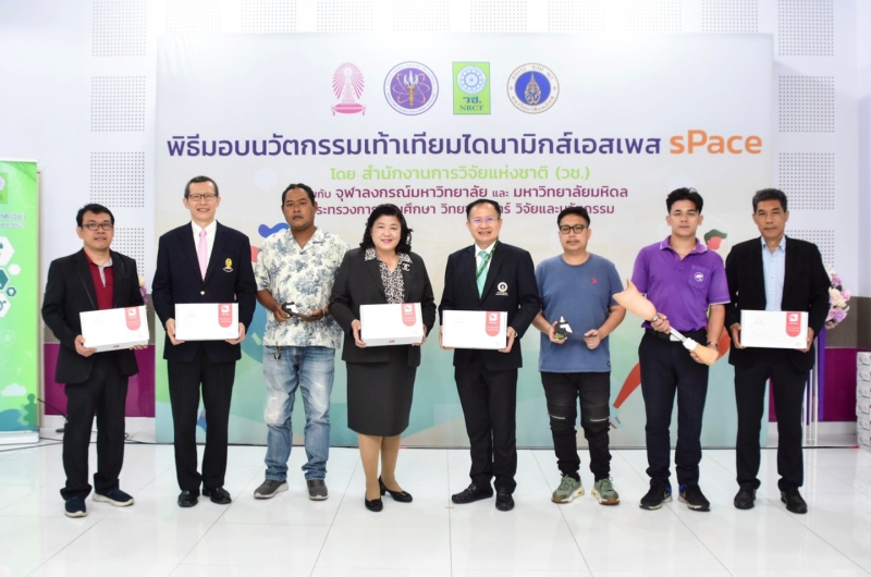 สำนักงานการวิจัยแห่งชาติ (วช.) กระทรวงการอุดมศึกษา วิทยาศาสตร์ วิจัยและนวัตกรรม ร่วมกับ คณะวิศวกรรมศาสตร์ จุฬาลงกรณ์มหาวิทยาลัย และ คณะแพทยศาสตร์ ศิริราชพยาบาล จัดพิธีส่งมอบนวัตกรรมเท้าเทียมไดนามิก “sPace” คุณภาพสูง เพื่อพัฒนาคุณภาพชีวิตผู้พิการ เป็นนวัตกรรมทางการแพทย์ฝีมือนักวิจัยไทย ให้แก่โรงพยาบาลศิริราช เพื่อยกระดับคุณภาพชีวิตผู้พิการ โดยมี ดร.วิภารัตน์ ดีอ่อง ผู้อำนวยการสำนักงานการวิจัยแห่งชาติ พร้อมด้วย ศาสตราจารย์ ดร.สุพจน์ เตชวรสินสกุล คณบดีคณะวิศวกรรมศาสตร์ จุฬาลงกรณ์มหาวิทยาลัย,รองศาสตราจารย์ ไพรัช ตั้งพรประเสริฐ หัวหน้าโครงการวิจัยฯ และศาสตราจารย์ นายแพทย์สุโรจน์ ศุภเวคิน รองคณบดีคณะแพทยศาสตร์ศิริราชพยาบาล ร่วมส่งมอบเท้าเทียมไดนามิก “sPace” ให้ตัวแทนผู้พิการ เมื่อวันที่ 4 กรกฎาคม 2566 ณ โรงเรียนกายอุปกรณ์สิรินธร โรงพยาบาลศิริราชกรุงเทพมหานคร