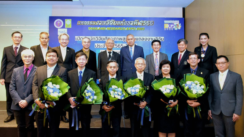 (8 สิงหาคม 2566) วันที่สองของ“มหกรรมงานวิจัยแห่งชาติ 2566 : Thailand Research Expo 2023” ภายใต้แนวคิด “ขับเคลื่อนงานวิจัย สู่เศรษฐกิจยุคใหม่ สร้างไทยยั่งยืน” ณ ห้อง Lotus Suite 7 ชั้น 22 บางกอกคอนเวนชันเซ็นเตอร์ เซ็นทรัลเวิลด์ กรุงเทพฯ สำนักงานการวิจัยแห่งชาติ (วช.) กระทรวงการอุดมศึกษา วิทยาศาสตร์ วิจัยและนวัตกรรม และสำนักงานพัฒนาวิทยาศาสตร์และเทคโนโลยีแห่งชาติ (สวทช.) ร่วมจัด “งานเปิดตัวนักวิจัยศักยภาพสูงและแถลงงานวิจัย ประจำปี 2565-2566” โดย ดร.วิภารัตน์ ดีอ่อง ผู้อำนวยการสำนักงานการวิจัยแห่งชาติ มอบหมายให้ นายสมปรารถนา สุขทวี รองผู้อำนวยการสำนักงานการวิจัยแห่งชาติ(วช.) ร่วมงาน ศาสตราจารย์ ดร.ชูกิจ ลิมปิจำนงค์ ผู้อำนวยการสำนักงานพัฒนาวิทยาศาสตร์และเทคโนโลยีแห่งชาติ (สวทช.) ศาสตราจารย์ ดร.ยงยุทธ ยุทธวงศ์ อดีตรองนายกรัฐมนตรี และประธานกรรมการทุนส่งเสริมกลุ่มวิจัยศักยภาพสูง และ ศาสตราจารย์กิตติคุณ นพ.สุทธิพร จิตต์มิตรภาพ ประธานกรรมการทุนส่งเสริมกลุ่มวิจัยศักยภาพสูง และประธานกรรมการส่งเสริมวิทยาศาสตร์ วิจัย และนวัตกรรม กองทุนส่งเสริม ววน. ร่วมแถลงข่าวเปิดตัว 6 นักวิจัยศักยภาพสูง และแถลงความก้าวหน้าผลงานและประโยชน์ที่ได้รับจากงานวิจัย ประจำปี 2565-2566 พร้อมด้วยคณะกรรมการทุนส่งเสริมกลุ่มวิจัยศักยภาพสูง ผู้บริหาร วช. ผู้บริหาร สวทช. ผู้บริหารต้นสังกัดนักวิจัย ผู้ทรงคุณวุฒิ และแขกผู้มีเกียรติ เข้าร่วมงาน