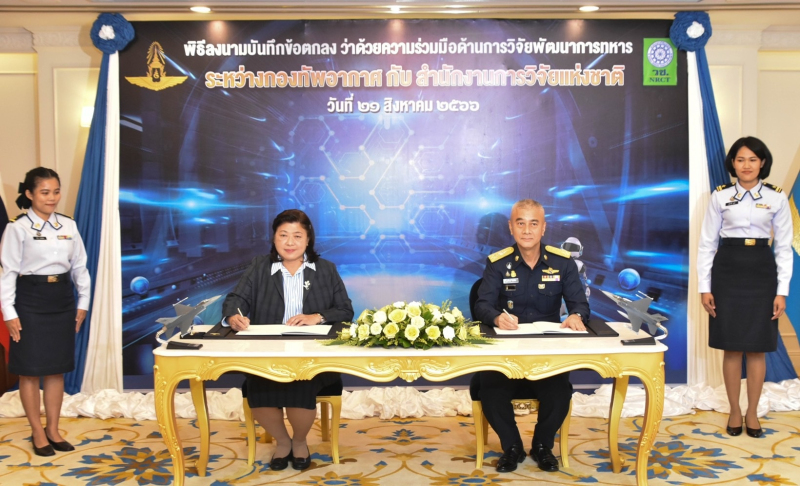เมื่อวันที่ 21 สิงหาคม 2566 โดย พลอากาศเอก อลงกรณ์ วัณณรถ ผู้บัญชาการทหารอากาศ เป็นประธานร่วมกับ ดร.วิภารัตน์ ดีอ่อง ผู้อำนวยการสำนักงานวิจัยแห่งชาติ ในพิธีลงนามบันทึกข้อตกลงว่าด้วยความร่วมมือด้านวิจัยและพัฒนาการทหาร ระหว่างกองทัพอากาศ กับ สำนักงานการวิจัยแห่งชาติ (วช.) กระทรวงการอุดมศึกษา วิทยาศาสตร์ วิจัยและนวัตกรรม เพื่อร่วมมือกันด้านการวิจัยในการพัฒนาประเทศ โดยใช้วิจัยและนวัตกรรมที่มีอยู่ให้เกิดประโยชน์ ณ ห้องรับรองพิเศษ 1 กองบัญชาการกองทัพอากาศ