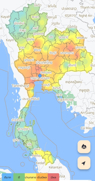 GISTDA เกาะติดสถานการณ์ฝุ่น PM 2.5 แบบรายชั่วโมง ด้วยข้อมูลจากดาวเทียมผ่านแอปพลิเคชั่น “เช็คฝุ่น” เมื่อเวลา 08.00 น. ของวันที่ 16 ธันวาคม 2566 พบทุกพื้นที่ กทม. มีค่าฝุ่นเกินมาตรฐาน โดยมี 14 เขตที่ส่งผลกระทบต่อสุขภาพระดับสีแดง สูงสุดที่บางกอกใหญ่ ธนบุรี พระโขนง ดอนเมือง หลักสี่ เป็นต้น ในขณะที่อีก 36 เขตที่เกินค่ามาตรฐานระดับสีส้มที่เริ่มส่งผลต่อสุขภาพ ในขณะที่ภาพรวมทั้งประเทศยังเกินมาตรฐาน 43 จังหวัด