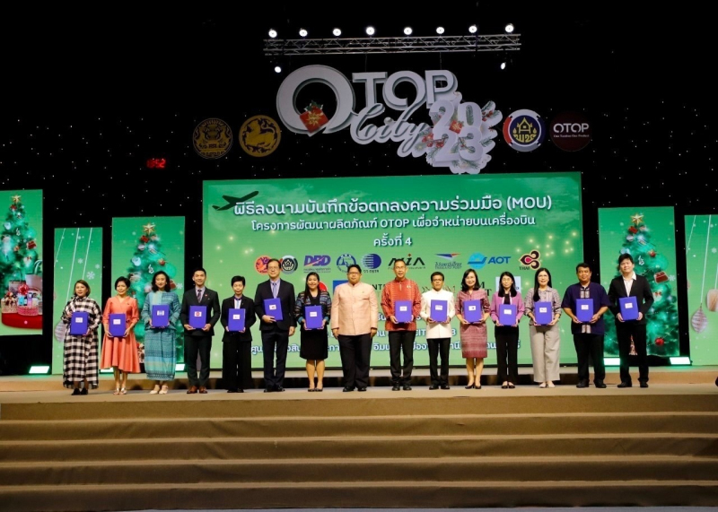 ดร.ชุติมา เอี่ยมโชติชวลิต ผู้ว่าการ สถาบันวิจัยวิทยาศาสตร์และเทคโนโลยีแห่งประเทศไทย (วว.) กระทรวงการอุดมศึกษา วิทยาศาสตร์ วิจัยและนวัตกรรม (อว.) ร่วมลงนามบันทึกข้อตกลงความร่วมมือ “โครงการพัฒนาผลิตภัณฑ์ OTOP เพื่อจำหน่ายบนเครื่องบิน ครั้งที่ 4” โดยมี นายชัยวัฒน์ ชื่นโกสุม อธิบดีกรมการพัฒนาชุมชน กระทรวงมหาดไทย เป็นประธานในพิธีและร่วมลงนามกับหน่วยงานภาครัฐและเอกชน ประกอบด้วย กรมการพัฒนาชุมชน กระทรวงมหาดไทย กรมพัฒนาธุรกิจการค้า กระทรวงพาณิชย์ การท่องเที่ยวแห่งประเทศไทย สำนักงานนวัตกรรมแห่งชาติ (องค์การมหาชน) บริษัท ท่าอากาศยานไทย จำกัด (มหาชน) บริษัท การบินไทย จำกัด (มหาชน) บริษัท การบินกรุงเทพ จำกัด (มหาชน) บริษัท ไทยแอร์เอเชีย จำกัด บริษัท ไปรษณีย์ไทย จำกัด บริษัท คิง เพาเวอร์ คอร์ปอเรชั่น จำกัด บริษัท สยามพิวรรธน์ จำกัด บริษัท ไอคอนสยาม จำกัด และบริษัท มอลล์ (ไทยแลนด์) จำกัด เพื่อส่งเสริมและสนับสนุนการพัฒนาการเพิ่มช่องทางการจำหน่าย และการประชาสัมพันธ์ผลิตภัณฑ์ OTOP เพื่อสร้างรายได้ให้แก่ผู้ผลิตในชุมชน สร้างภาพลักษณ์และคุณค่าของผลิตภัณฑ์ที่เกิดจากภูมิปัญญาไทยสู่สากล ในวันที่ 20 ธันวาคม 2566 ณ เวทีกลาง อาคารชาเลนเจอร์ 2 ศูนย์แสดงสินค้าและการประชุมอิมแพ็ค เมืองทองธานี