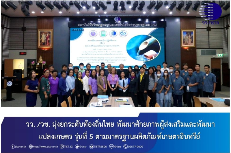 วว. /วช. มุ่งยกระดับท้องถิ่นไทย พัฒนาศักยภาพผู้ส่งเสริมและพัฒนาแปลงเกษตร รุ่นที่ 5 ตามมาตรฐานผลิตภัณฑ์เกษตรอินทรีย์