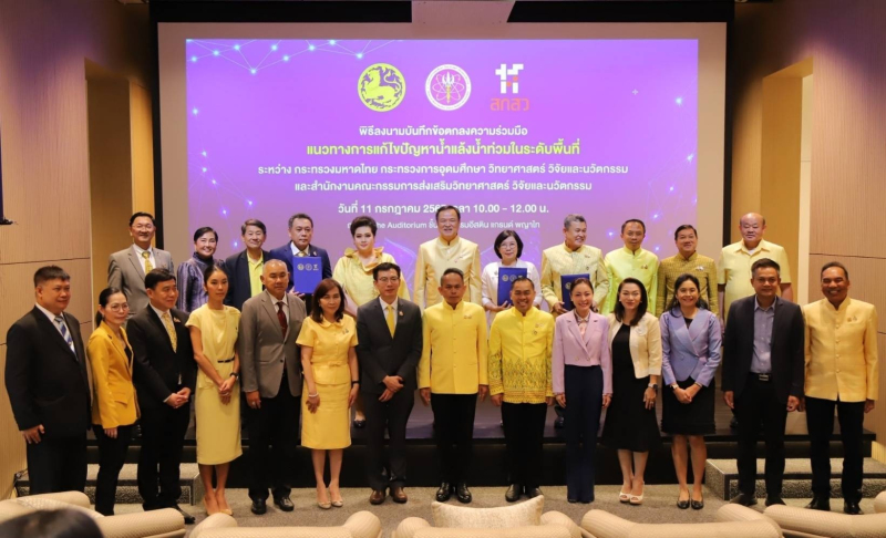 เมื่อวันที่ 11 กรกฎาคม 2567 นายอนุทิน ชาญวีรกูล รองนายกรัฐมนตรี และรัฐมนตรีว่าการกระทรวงมหาดไทย (มท.) เป็นประธานในพิธีลงนามบันทึกข้อตกลงความร่วมมือ “แนวทางการแก้ไขปัญหาน้ำแล้งน้ำท่วมในระดับพื้นที่” เพื่อร่วมกันแก้ไขปัญหาน้ำแล้งและน้ำท่วมในระดับพื้นที่ โดยน้อมนำแนวพระราชดำริของพระบาทสมเด็จพระบรมชนกาธิเบศรมหาภูมิพลอดุลยเดชมหาราช บรมนาถบพิตร และพระบาทสมเด็จพระวชิรเกล้าเจ้าอยู่หัว ร่วมกับการใช้ระบบและองค์ความรู้จากงานวิจัยและนวัตกรรม สู่การบริหารจัดการน้ำและยกระดับอาชีพให้กับชุมชน โดยมีนางสาวศุภมาส อิศรภักดี รัฐมนตรีว่าการกระทรวงการอุดมศึกษา วิทยาศาสตร์ วิจัยและนวัตกรรม (อว.) รศ. ดร.ปัทมาวดี โพชนุกูล ผู้อำนวยการสำนักงานคณะกรรมการส่งเสริมวิทยาศาสตร์ วิจัยและนวัตกรรม (สกสว.) รศ. ดร.สุจริต คูณธนกุลวงศ์ ผู้อำนวยการแผนงานการนำผลงานวิจัยไปสู่การใช้ประโยชน์ ด้านการบริหารจัดการน้ำ สำนักงานการวิจัยแห่งชาติ (วช.) คณะผู้บริหารจาก อว. และ มท. ข้าราชการ และเจ้าหน้าที่ เข้าร่วม ณ โรงแรมอีสติน แกรนด์ พญาไท กรุงเทพฯ