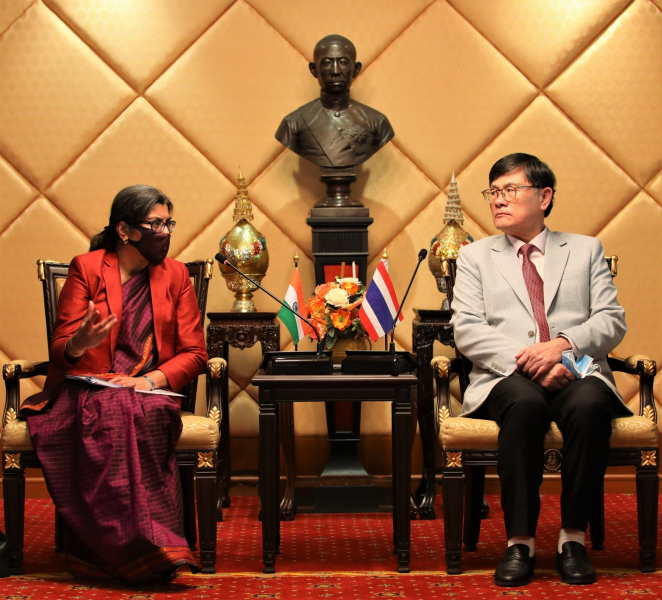 เมื่อวันที่ 1 กุมภาพันธ์ 2564 เวลา 15.30 - 16.00 น. นางสุจิตรา ทุไร (H.E. Ms. Suchitra Duri) เอกอัครราชทูตวิสามัญผู้มีอำนาจเต็มแห่งสาธารณรัฐอินเดียประจำประเทศไทย ได้เข้าเยี่ยมคารวะ ศ.(พิเศษ) ดร.อเนก เหล่าธรรมทัศน์ รัฐมนตรีว่าการกระทรวงการอุดมศึกษา วิทยาศาสตร์ วิจัยและนวัตกรรม (รมว.อว.) ณ ห้องพระจอมเกล้าชั้น 4 อาคารพระจอมเกล้า สำนักงานปลัดกระทรวงการอุดมศึกษา วิทยาศาสตร์ วิจัยและนวัตกรรม
