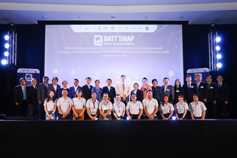 เมื่อวันที่ 24 พ.ค. 2566 ศ.(พิเศษ) ดร.เอนก เหล่าธรรมทัศน์ รัฐมนตรีว่าการกระทรวงการอุดมศึกษา วิทยาศาสตร์ วิจัยและนวัตกรรม (อว.) เป็นประธานเปิด "การทดสอบภาคสนามจากผลงานโครงการวิจัยและพัฒนาแพล็ตฟอร์มแพ็กแบตเตอรี่มาตรฐานแบบสับเปลี่ยนสำหรับมอเตอร์ไซค์ไฟฟ้าเพื่อยกระดับอุตสาหกรรมยานยนต์สมัยใหม่ในประเทศไทย" โดยมี ศ.ดร.นพ.สิริฤกษ์ ทรงศิวิไล ปลัดกระทรวง อว. และ ศ.ดร.นิสัย เฟื่องเวโรจน์สกุล ผู้แทนผู้อำนวยการหน่วยบริหารและจัดการทุนด้านการเพิ่มความสามารถในการแข่งขันของประเทศ (บพข.) ดร.จุฬารัตน์ ตันประเสริฐ รองผู้อำนวยการสำนักงานพัฒนาวิทยาศาสตร์และเทคโนโลยีแห่งชาติ สายงานกลยุทธ์องค์กร ร่วมแสดงความยินดี ทั้งนี้ ดร.สุมิตรา จรสโรจน์กุล ผู้อำนวยการศูนย์เทคโนโลยีพลังงานแห่งชาติ (ENTEC) ได้กล่าวรายงานการจัดงานในครั้งนี้ ณ ห้อง SD601 ชั้น 6 อาคารสราญวิทย์ (อาคาร 12) และสถานีสับเปลี่ยนแบตเตอรี่ อาคารศูนย์ประชุมอุทยานวิทยาศาสตร์ประเทศไทย สวทช. อ.คลองหลวง จ.ปทุมธานี