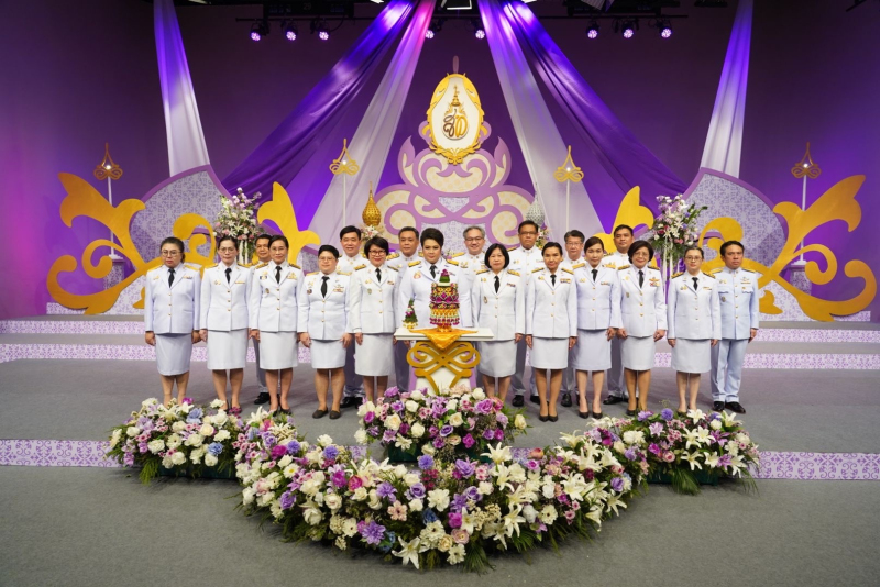 เมื่อวันที่ 27 พ.ค. นางสาวศุภมาส อิศรภักดี รัฐมนตรีว่าการกระทรวงการอุดมศึกษา วิทยาศาสตร์ วิจัยและนวัตกรรม (อว.) พร้อมด้วย นายเพิ่มสุข สัจจาภิวัฒน์ ปลัดกระทรวง อว. นำคณะผู้บริหารระดับสูงของกระทรวง อว. บันทึกเทปถวายพระพร เนื่องในโอกาสมหามงคลเฉลิมพระชนมพรรษา สมเด็จพระนางเจ้าสุทิดา พัชรสุธาพิมลลักษณ พระบรมราชินี 3 มิถุนายน 2567 เพื่อแสดงความจงรักภักดีและน้อมสำนึกในพระมหากรุณาธิคุณที่ทรงมีต่อพสกนิกรชาวไทย ณ สถานีวิทยุโทรทัศน์แห่งประเทศไทย (NBT) กรุงเทพมหานคร