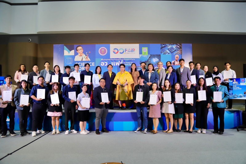 เมื่อวันที่ 27 กรกฎาคม 2567 นางสาวศุภมาส อิศรภักดี รัฐมนตรีว่าการกระทรวงการอุดมศึกษา วิทยาศาสตร์ วิจัยและนวัตกรรม (อว.) เป็นประธานในพิธีมอบประกาศนียบัตรแสดงความยินดีแก่นักวิจัยไทยที่ร่วมนำเสนอผลงานและจัดนิทรรศการในงาน อว.แฟร์: SCI POWER FOR FUTURE THAILAND มหกรรมส่งเสริมการใช้ประโยชน์ อววน. เพื่อการพัฒนาเศรษฐกิจไทยอย่างยั่งยืน ด้วยพลังสหวิทยาการ ซึ่งจัดระหว่างวันที่ 22 – 28 กรกฎาคม 2567 โดยมีนางสาวสุชาดา แทนทรัพย์ เลขานุการรัฐมนตรีกระทรวง อว. ศ.ดร.ศุภชัย ปทุมนากุล รองปลัดกระทรวง อว. ศ.เกียรติคุณ ดร.นพ.สิริฤกษ์ ทรงศิวิไล ประธานคณะกรรมการส่งเสริมวิทยาศาสตร์ วิจัยและนวัตกรรม ดร.วิภารัตน์ ดีอ่อง ผู้อำนวยการสำนักงานการวิจัยแห่งชาติ ผู้ทรงคุณวุฒิ ผู้บริหาร และนักวิจัย เข้าร่วม ณ ศูนย์การประชุมแห่งชาติสิริกิติ์